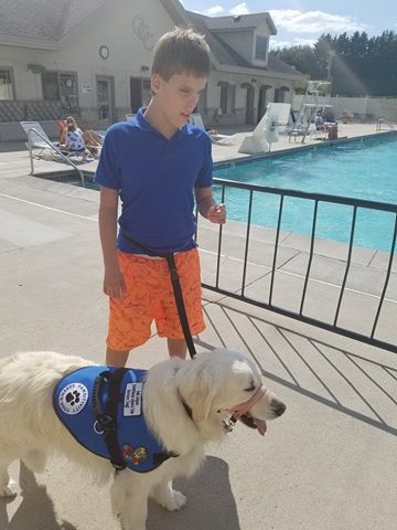 Service Dogs Our precious adult goldens adopted for service dogs to special precious loving children in need that is a true gift from God. We are so grateful our adults goldens help those with special needs.